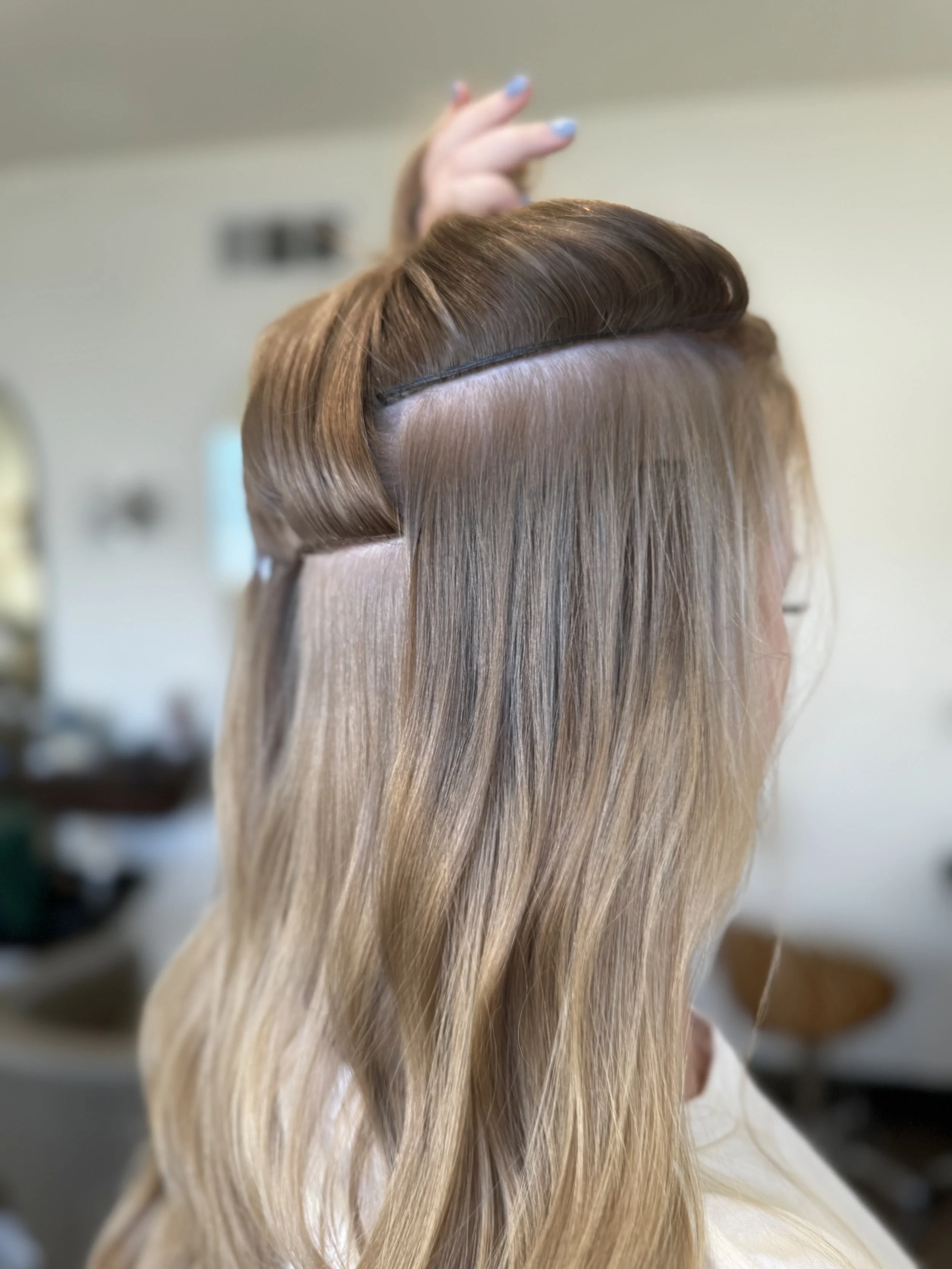 maintenance for your weft hair extensions is super straightforward. you’ll come in every 6–8 weeks for a move-up. during your appointment, i’ll fully remove and reinstall the wefts. and check everything to make sure your scalp and hair are staying healthy underneath.